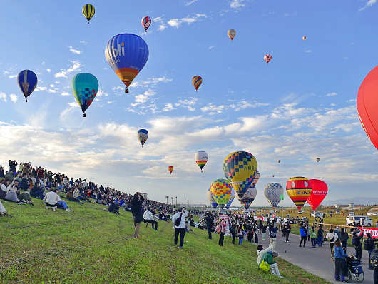 今回初めて会場となっている嘉瀬川河川敷でバルーンの見物をしましたが、迫力ある数十基のバルーンを目の前で見れて大感激でした。