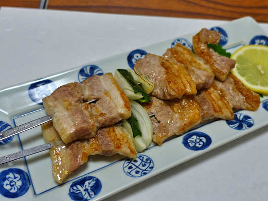 豚バラの串焼きです。これも思った以上の大きさだったので2本だけ注文して正解でした。普通の串焼きを想像して盛り合わせで注文していたら大変なことになっていたでしょうね?(笑)