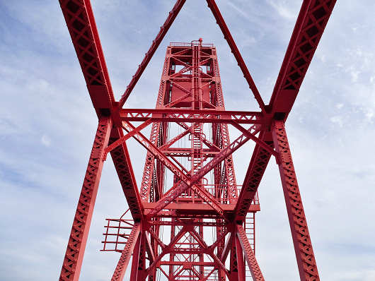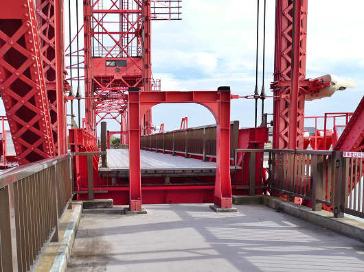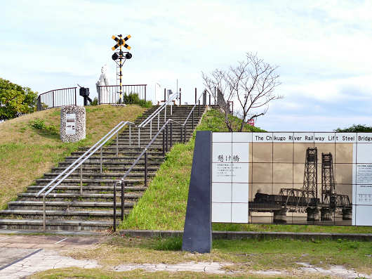 階段の上には鉄道の信号機のようなものが立っていましたが、築後川昇開橋は旧国鉄時代の佐賀線が筑後川を渡るために架けられた鉄道橋だったんですよね。
