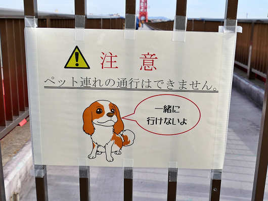 入口の扉にはこんな貼り紙もありました。以前りゅう君とこの橋の福岡県側を訪れ時にも、橋を渡る時にはりゅう君は車でお留守番をしていたんですよね。