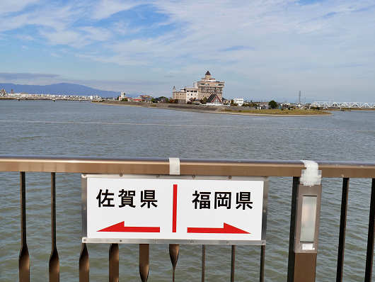 ここにはこの様な標識もあって、橋の中央部付近(築後川の中ほど)が佐賀県と福岡県の県境のようでした。