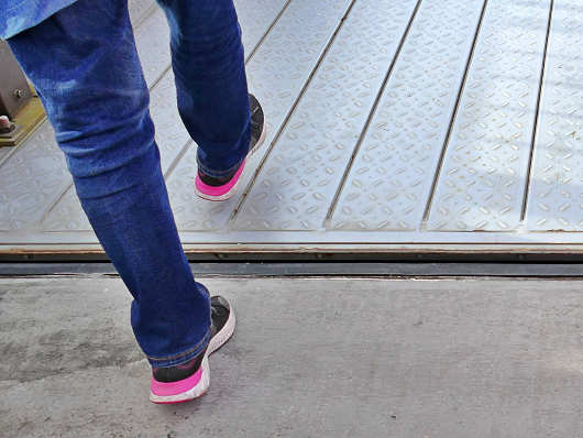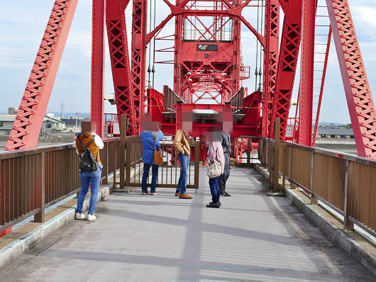 そして係の人の指示で観光客も福岡県側へと渡り始めました。画像はりゅうママが可動部への第一歩を踏み出す貴重な瞬間です(笑)