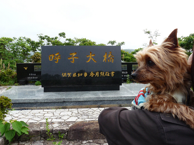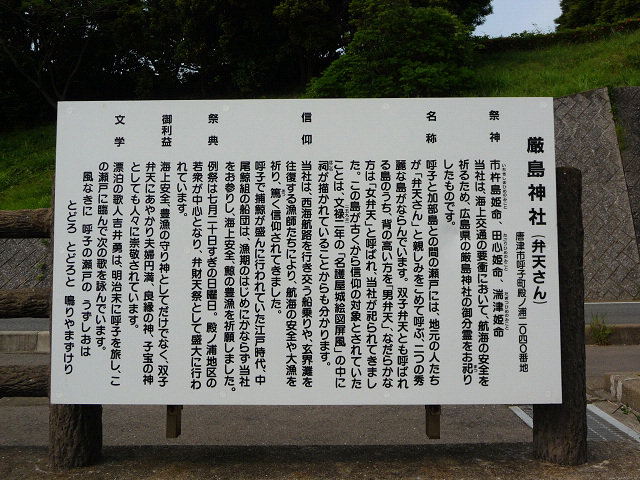 呼子側の駐車場に着きました、厳島神社ってあの有名な神社と関係あるの? 呼子大橋の真下にあるようなので、りゅう君のお散歩がてらに行ってみることにしました。