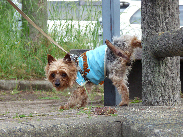 ママぁ、おしっこをするからちょっと待ってね、りゅう君はなぜかおしっこの時もカメラ目線なんです。