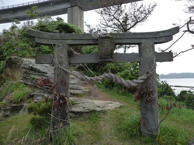 遊歩道の終点にある島には鳥居がありました、これが厳島神社なのかな?