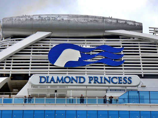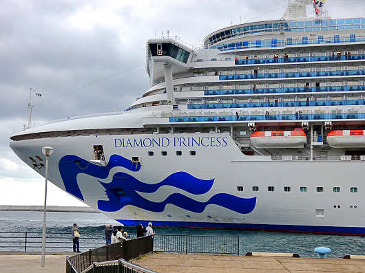 ダイヤモンド・プリンセスは総トン数が約116000t、全長は290mもある巨大な船なので、まるで大きなビルがゆっくりと移動しているような感じでとても威圧感がありました。