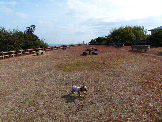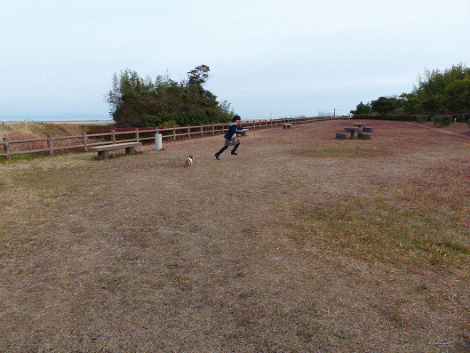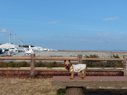 国東市へは無料高速の大分空港を通って、その後海岸沿いの国道を数分も走ると大分空港が見える展望公園に到着します、ここでりゅう君はお散歩です、