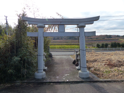 この鳥居の向こうには国道213号線が走っていて、その先が目的のヒマワリ畑だよ、