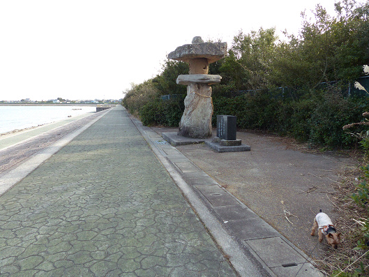 まずは鳥居の海岸側へ行ってみました、でもここには神社があるのかと思ったらこんな大きな石灯篭みたいなものだけがありました、