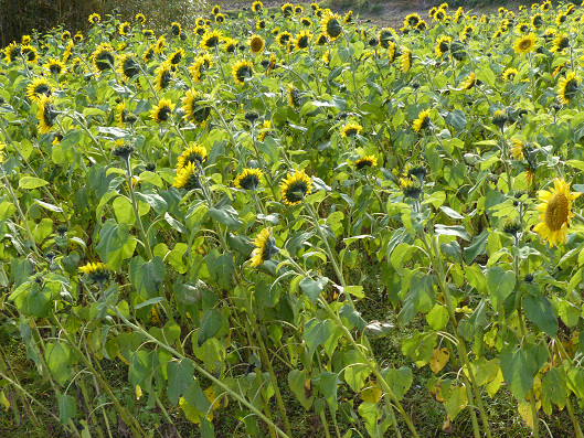 このヒマワリはヒマワリ油を製造する地元企業が9月上旬に種を蒔いたら12月中旬より花が咲き出したそうです、
