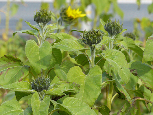 ヒマワリのなかにはまだ蕾もたくさんあって、冬のヒマワリは夏のものより開花時期が長いそうだから当分は楽しめそうだね、