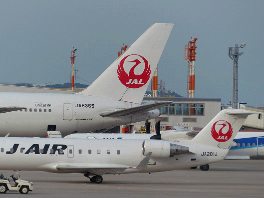 ヒマワリの見物が終わったらまた大分空港の展望公園に戻って来ました、でもさっきと違って今度は何機かの飛行機が停まっていました、JALの鶴マークとJ・AIRの鶴マークが同時に見れてラッキーだね、