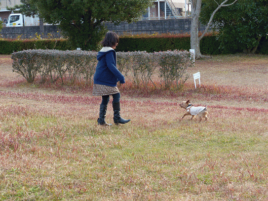 しばらく公園でお散歩をしてると女の子がやって来てりゅう君を追いかけていたと思ったら、いつのまにかりゅう君が女の子を追いかけ始めました、女の子も喜びながら逃げています(笑)