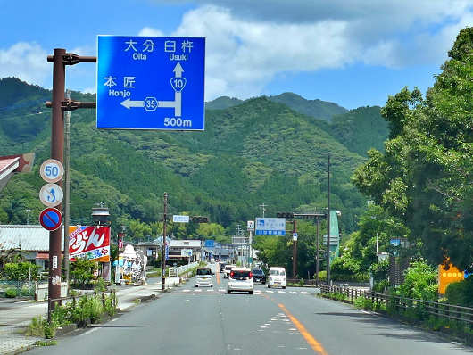 サマーフェスタの会場を出発したら、佐伯市街地を抜けて番匠川沿いの国道10号線へ出て大分方面へ進んでいると、前方に道の標識が見えてくるのでここに車を停めました。