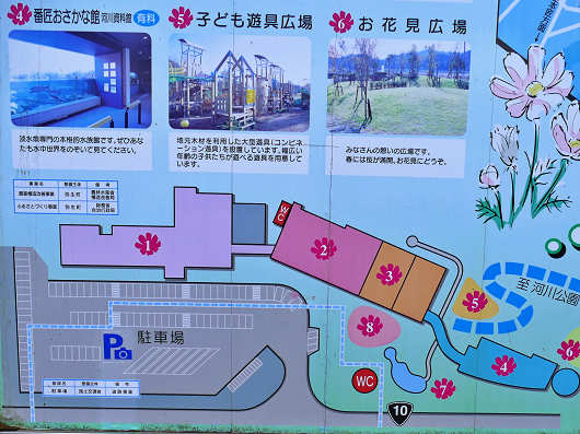 ここは敷地内に番所川に生息する魚類などを展示している淡水魚水族館の「番匠おなさかな館」もあります。ここでは色んな珍しい魚なども展示していて、数万匹に一匹といわれる青白い色をした「コバルトアユ」も水槽内で泳いでいます。