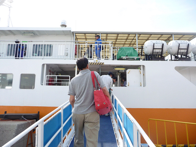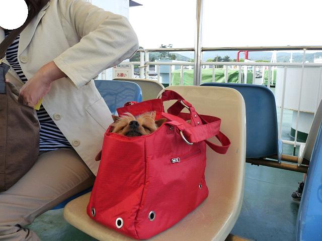 僕はキャリーバッグに入ったままでフェリーに乗ります。