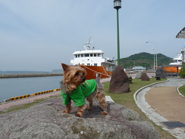 さっそく、船着場の横の公園をお散歩です、うしろに見えるのは第二姫島丸です。