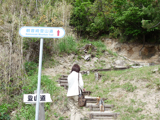 これから、登山道を登っていきます、僕は階段の登りは得意だよ。