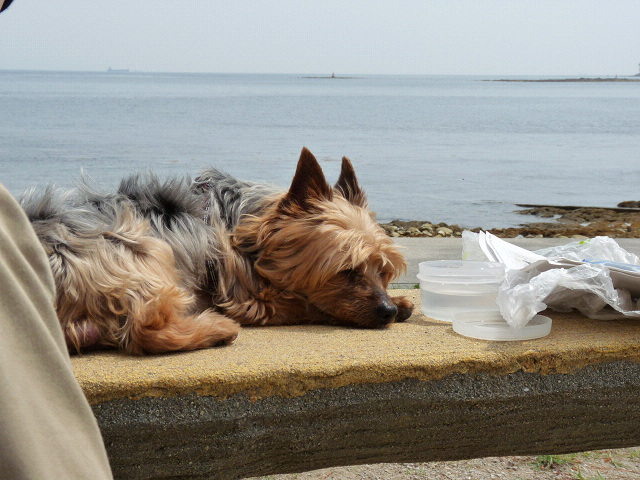 観音崎から元の場所へ降りてきました、りゅう君はもうぐったりです、それにしてもなんでいつもお尻がはみ出すのかなぁ?