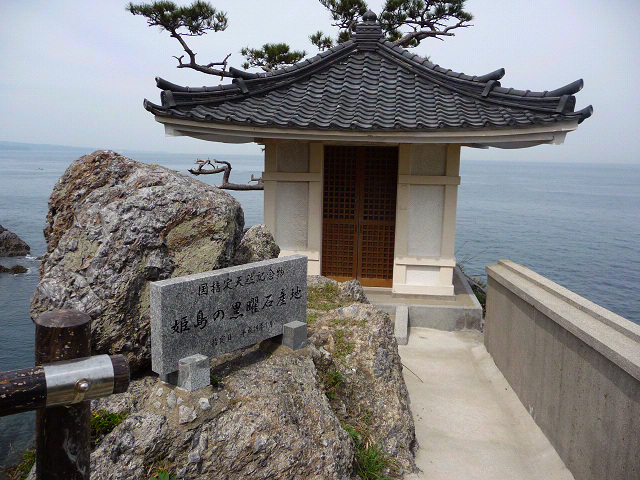 同じ場所に黒曜石産地の碑があります、全国にいくつか黒曜石の産地はありますが、姫島だけがその歴史的価値から国の天然記念物に指定されています。