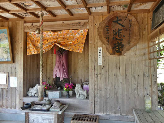 大悲堂は三方の扉が開放されていて、木造の観音様が祀られていましたが、観音像は長年の風雨による劣化なのか?お顔の表情はほとんど分かりませんでした。