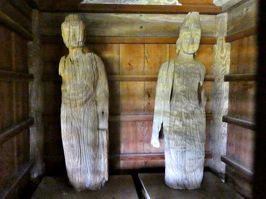 観音堂には3体の観音様が祀られているようでしたが、これは右側に祀られていた2体の観音様です。この観音様も長年の風雨による影響なのか?顔の表情などがはっきりしませんでした。今では雨風の心配もないお社に安置されている観音様ですが、かつては雨ざらしの時期があったのかも知れませんね?