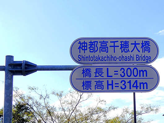 階段を潜って第二駐車場への階段を上ると一方は第二駐車場へ、そしてもう一方にはこの様な標識があって、神都高千穂大橋を歩いて渡れるようになっているので、橋の途中まで歩いてみました。