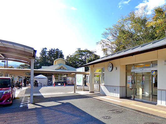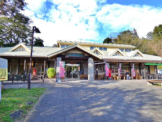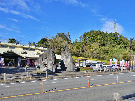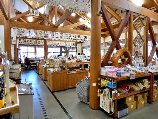 道の駅の敷地の周辺を見て廻ったら物産館へと向かいました。奥に見える建物が物産館・レストランで、手前の建物は情報・休憩コーナーです。ここには常駐の職員さんがいました。