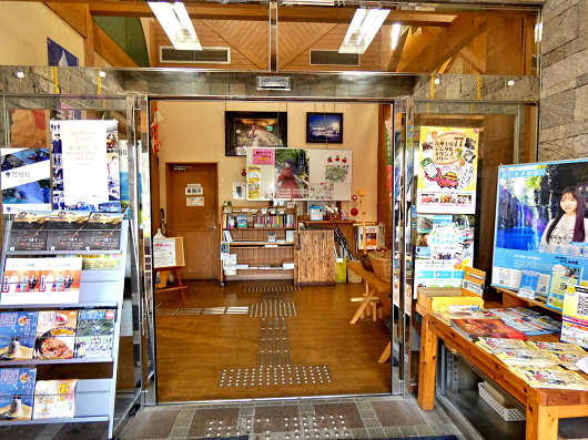 入口はこんな感じで、中へ入って左に行けばレストランへ、右に行けば物産館がありますが、入口付近にはたくさんの観光パンフなどが置かれて情報コーナーのようになっていました。