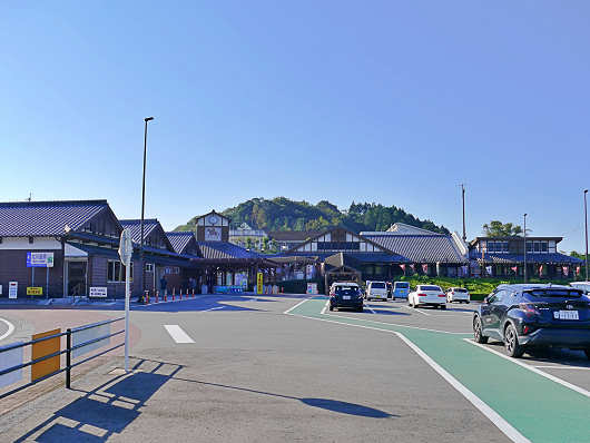 ここは敷地がとても広いので全景は撮影ができませんが、画像に写っている建物は左からトイレ、情報コーナー、物産館、レストランなどで、建物はL字型に配置されています。