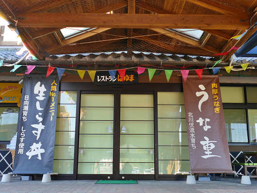結局「道の駅 宇目(うめ)」ではトイレ休憩をしただけで、すぐに出発して国道326号から国道10号へ出て、宮崎県延岡市北川町にある「道の駅 北川はゆま」に車を停めました。