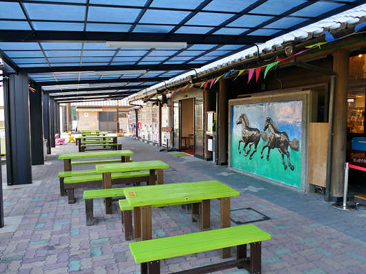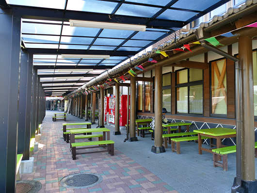 レストラン「はゆま」の前には屋根付きのテラス席もあって、外でも食事ができるようになっていました。
