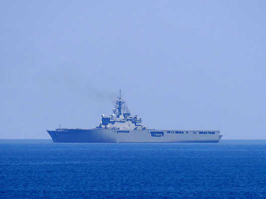LCACは母艦の輸送艦「しもきた」に向かって走行して行ったので、もしかしたら「しもきた」の艦内へ入るところが見れるかもしれないかな?と思いましたが・・・