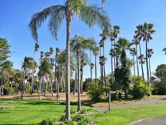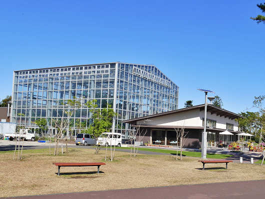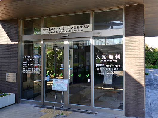 青島へは熱帯植物園の「宮交ボタニックガーデン青島」の中を抜けて行きましたが、画像に写っている全面ガラス張りの建物は大温室です。