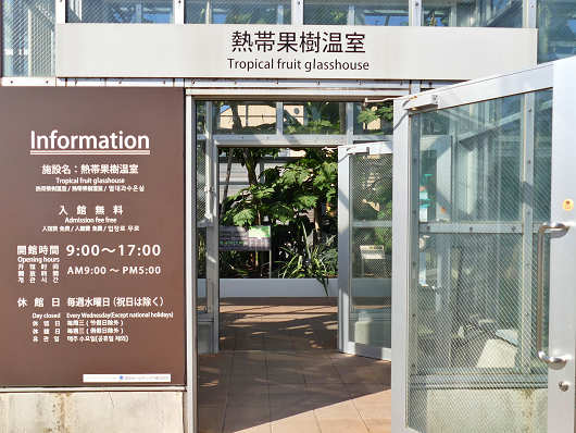 ここは熱帯果樹温室です。ここを訪れたのは火曜日でしたが、この温室は休館日が毎週水曜日になっていたので、大温室が休館日でもここは見物ができました。