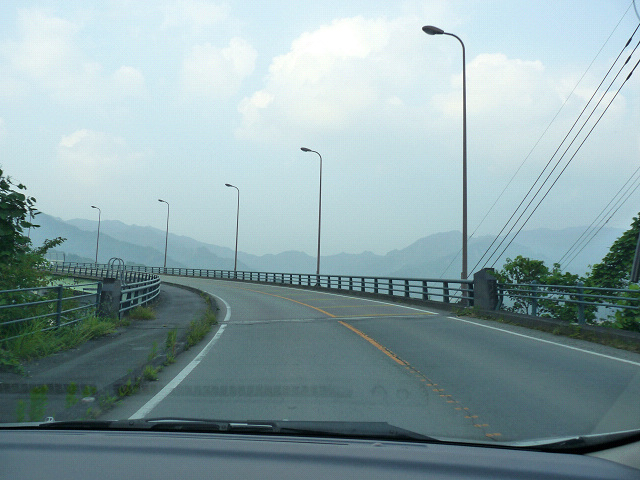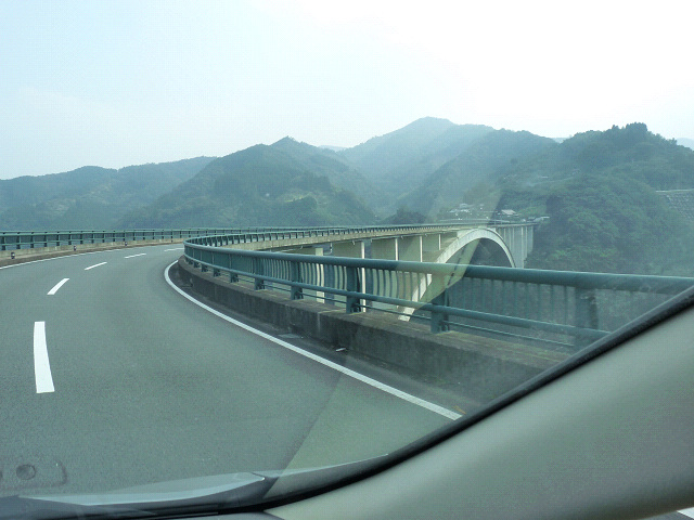 さっそく橋を車で走ってみたんだけど目が眩みそうな高さだよ、パパぁ中央線をはみ出して反対車線を走ってるよ、危ないから駄目だよ、この橋には歩道が無かったので残念ながら橋の上から下を見た画像は無いんだよ。