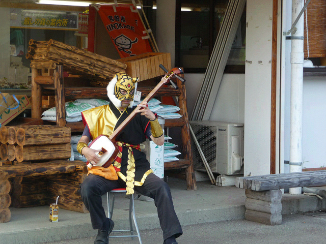 道の駅の前ではタイガーマスクのおじさんが三味線を弾いていました、ここに居る間ずっと演奏してたから、相当に腕が疲れただろうにね。