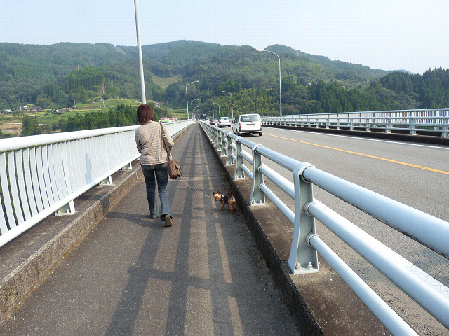 ここに着いた時点でもう15時を廻っていたので、りゅう君はここでちょっと早い夕方のお散歩です、青雲橋は国道に架かってる橋だけあって両側に歩道があるので安心してお散歩が出来ます、これからここを往復するよ。