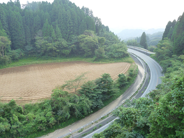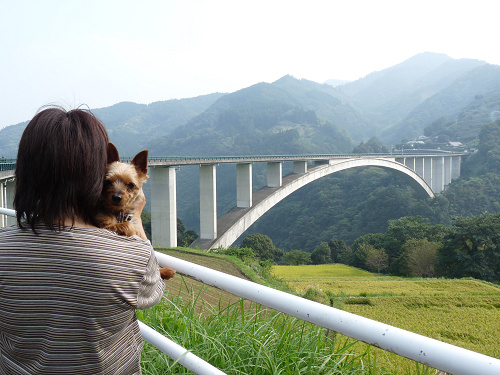 すごい見事なアーチ橋だよ、この橋は五ヶ瀬川に架かっているんだけど水面からの高さが143mもあって日本一の高さだそうだよ、それにコンクリートのアーチ橋としても日本一の長さなんだって、すごいよね、でもこの橋が架かってる道路は農道なんだよ。