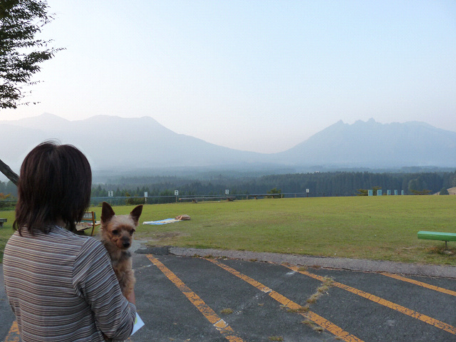 ここからは阿蘇・根子岳が目の前に見えるんだけど、もうすでに暗くなり始めていて、もやもかかっていたので残念ながらきれいには見えませんでした。
