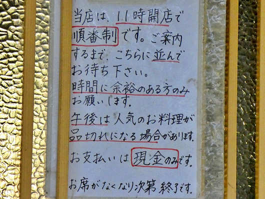 入口にはこの様な貼り紙があって、「郷土料理 綾の里」は11時に開店しますが、ここは予約ができないので開店時間まで並んで待ちました。