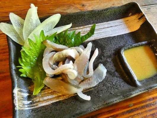 鮎の背ごしです。過去2回はこの横に捌かれた鮎の頭も乗っていて、口がパクパクと動いていたんですよね(笑)