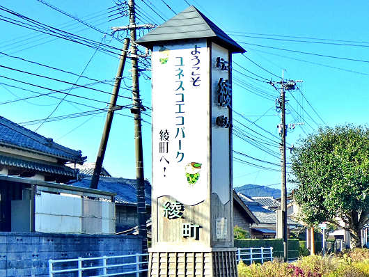 西都市から内陸部へ続く道を十数㎞も走ると、道路沿いに「ようこそ ユネスコエコパーク 綾町へ!」と書かれた標識が見えてきて、宮崎県東諸県郡綾町(ひがしもろかたぐん あやちょう)へ入りました。