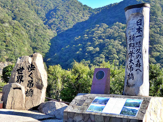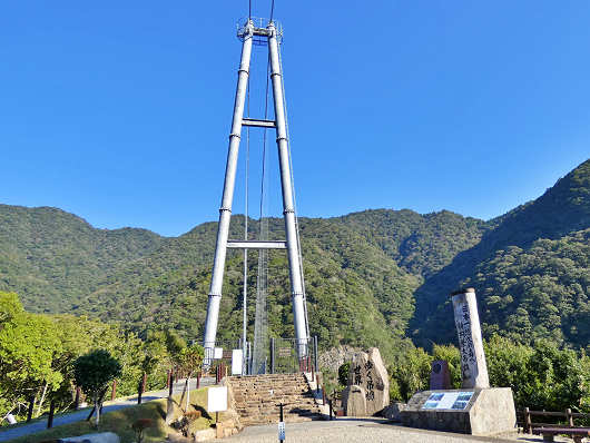 ここには「歩く吊橋世界一」と刻まれた石碑もありました。照葉大吊橋は1984年に架橋された吊橋で、完成当時は歩行者専用吊橋としては日本一の高さの142mでしたが、2006年に高さが173mの九重夢大吊橋に抜かれて現在は日本で2番目の高さだそうです。