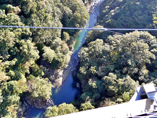 ここから覗いた下の景色です。真下にはとてもきれいな清流の本庄川(綾南川)が流れていました。