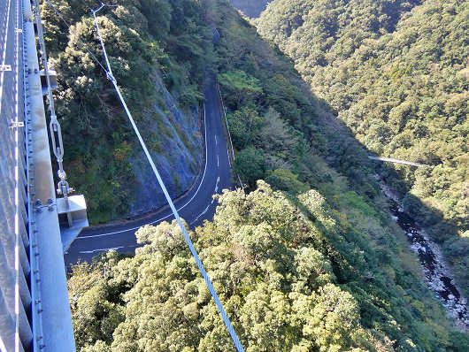 そしてここからは下を走っている県道26号も見えました。ここへ来る途中には頭上に吊橋が見えましたが、この辺りを走っている時に見えたんでしょうね。