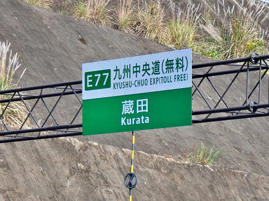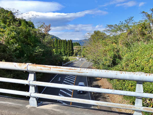 この時は高速道を降りたらすぐに左折して、一般道(旧道?)の国道218号をUターンするように延岡市街地方面へ少しだけ戻って、国道218号を跨ぐ小さな橋を渡りました。橋の下に見ている道路が国道218号で、九州中央道の蔵田ICは数百mほど先にあります。