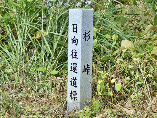 ここにはこの様な標柱もありました。日向往還は肥後国(熊本県)と日向国(宮崎県)を結ぶ九州を横断する江戸時代の街道ですが、標柱には杉峠とも刻まれていたので、徒歩での往来が一般的だった当時としてはこの辺りは難所のひとつだったのかも知れませんね?