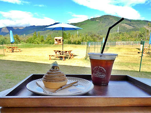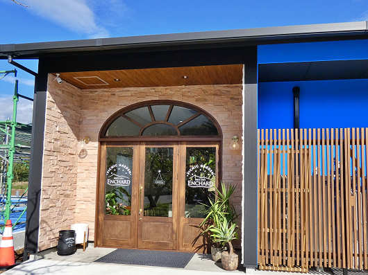 この建物がこの日スイーツをいただく宮崎県延岡市北方町蔵田辰の「カフェ エンチャード」です。ここは今年の8月にオープンしたばかりの新店さんです。北方町は以前このブログで紹介したことがありますが干支の町と呼ばれて、住所表示の大字の代わりに干支を用いているので、ここの住所は蔵田の後に「辰(たつ)」の文字が入っています。