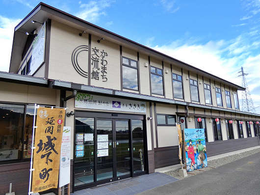 この建物が「かわまち交流館」です。延岡市はお家から2時間もあれば行ける距離なので、例年この時季になると落ち鮎料理を食べにここを訪れていますが、今年はもっと南へ下った綾町(あやちょう)で鮎料理を食べる予定なので、ここへはりゅうママがランチの予約をしたカフェへ向かう途中に時間調整でちょっと訪れただけです。